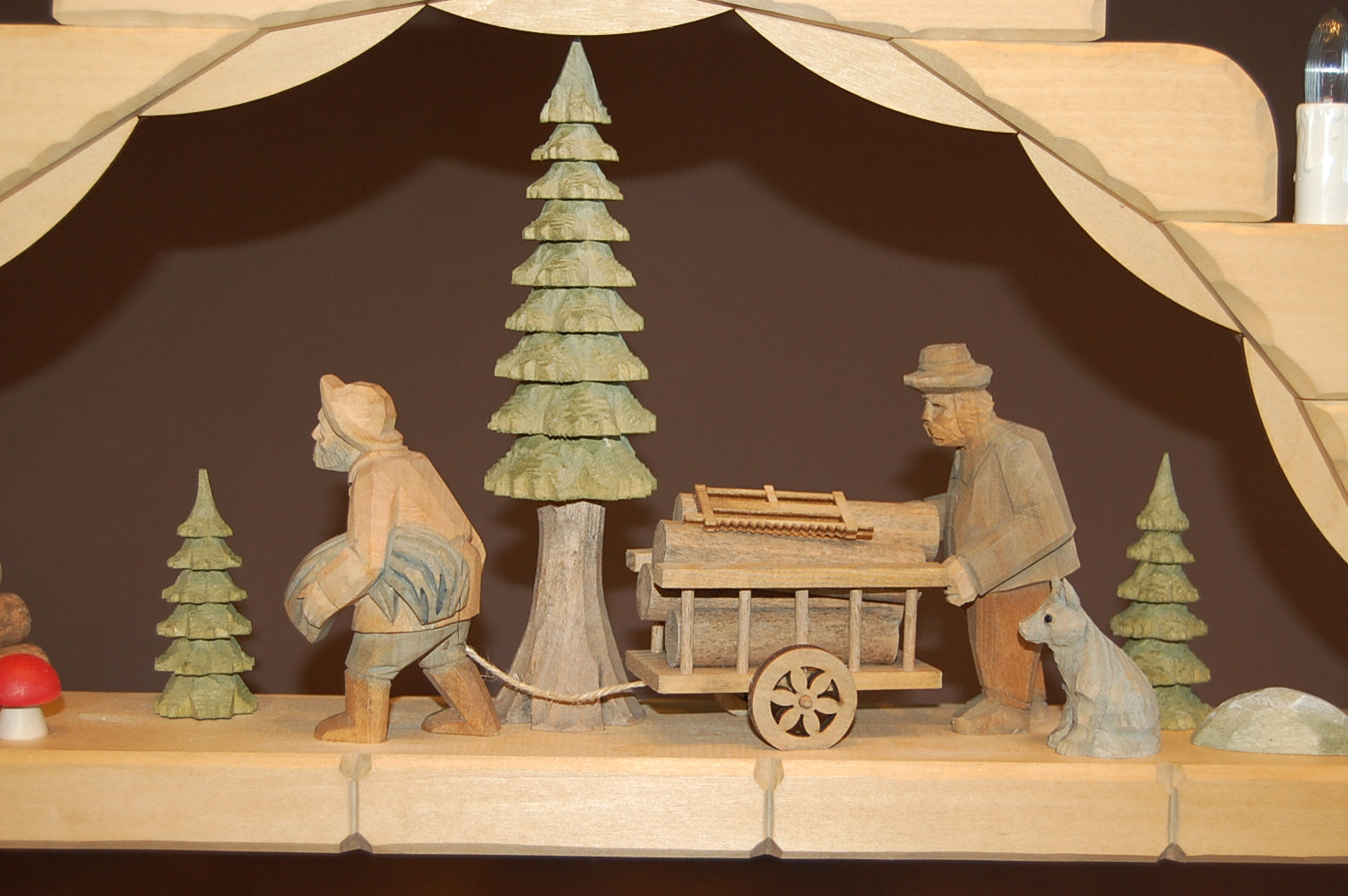 Schwibbogen Holztransport geschnitzt, 71x44 cm