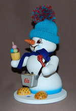 Räuchermann Schneemann weiß Eisverkäufer und gestrickter Mütze